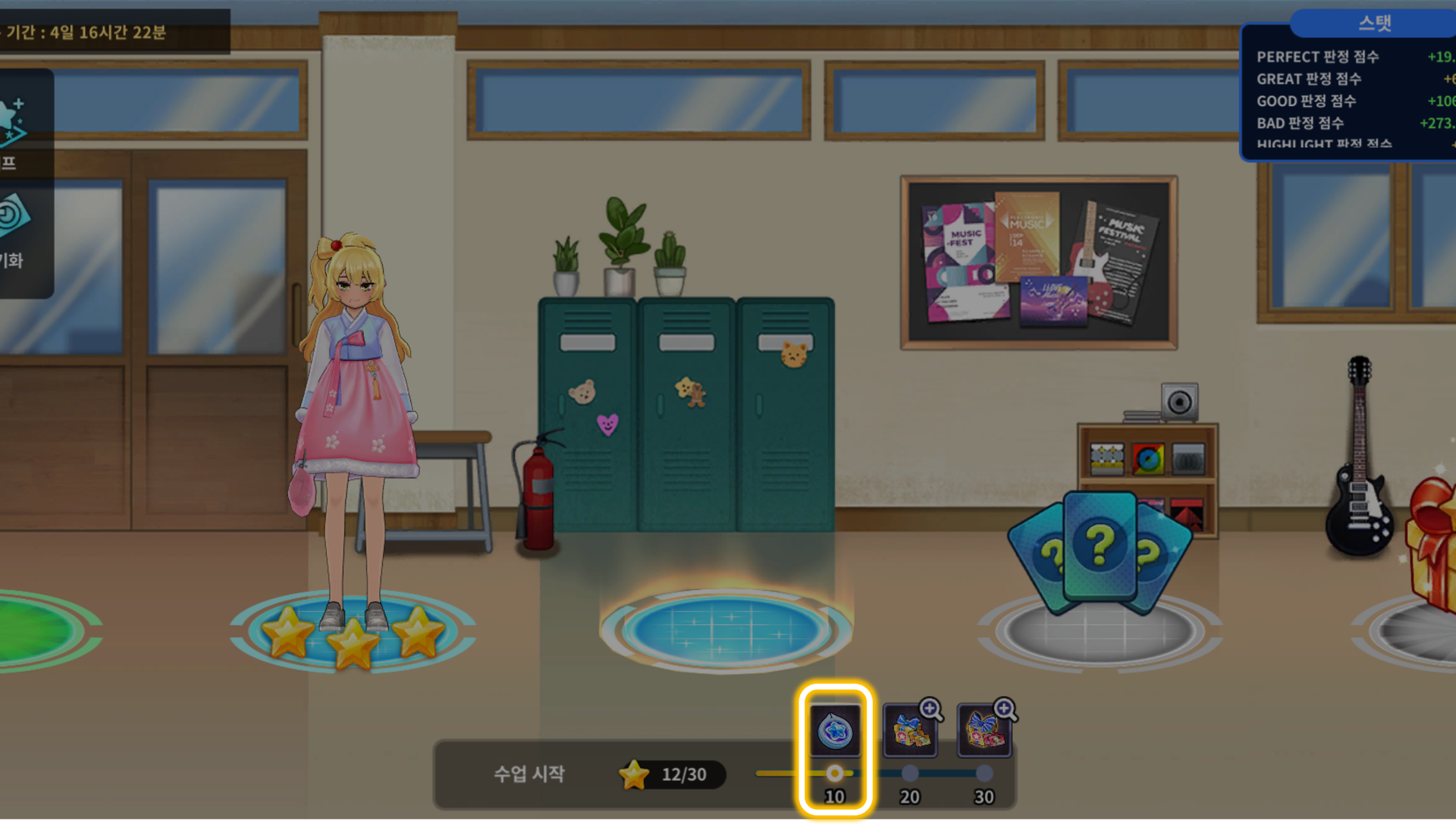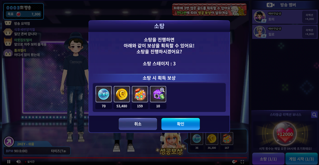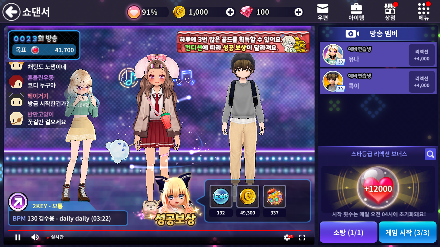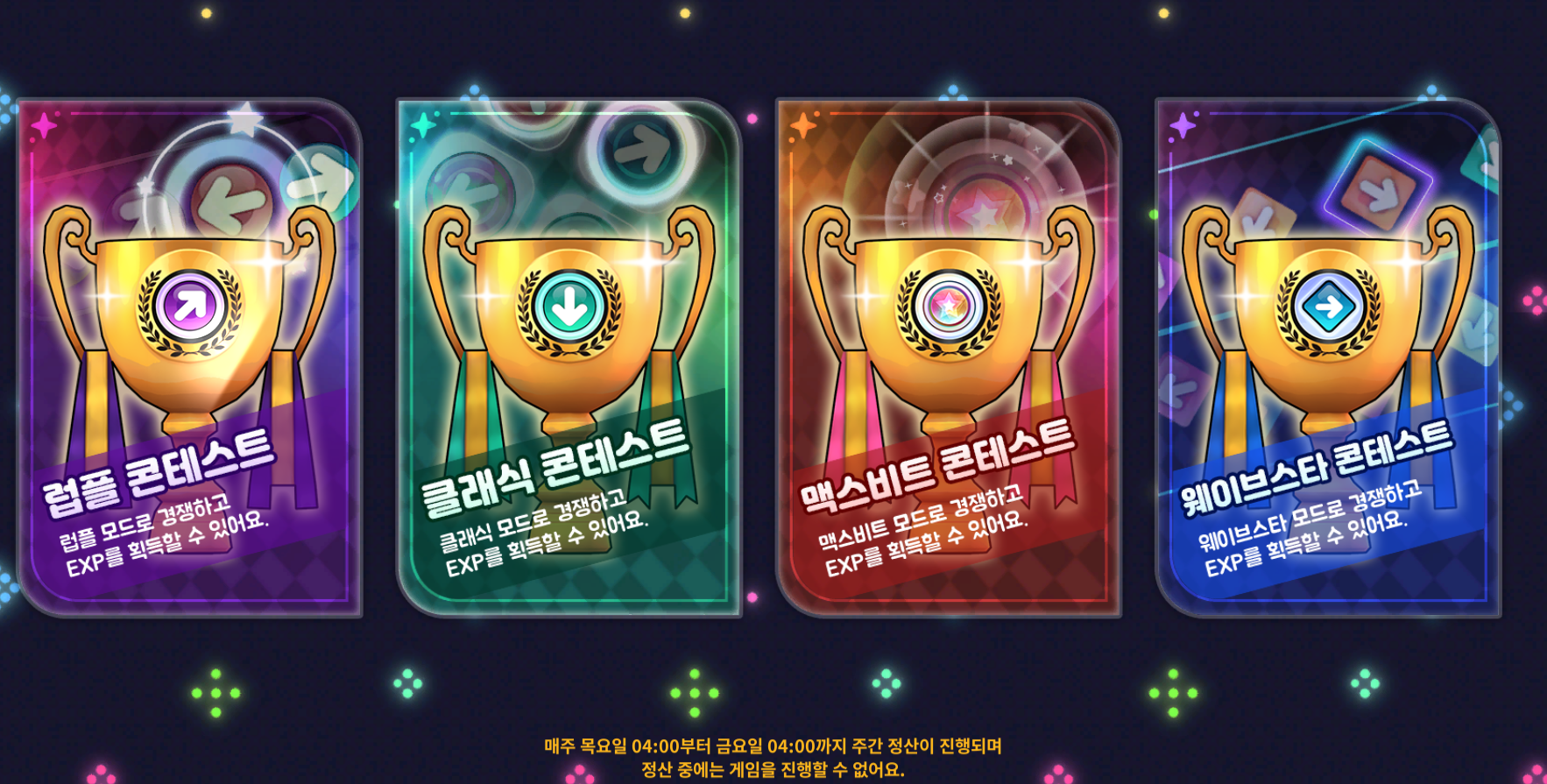 댄스 콘테스트 모든 모드를 3판씩 플레이합니다.