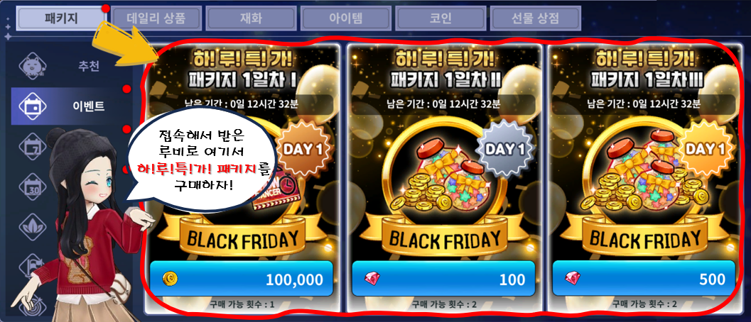 이번 BLACK FRIDAY를 맞아 상점에서 100 루비로도 구매할 수 있는,
