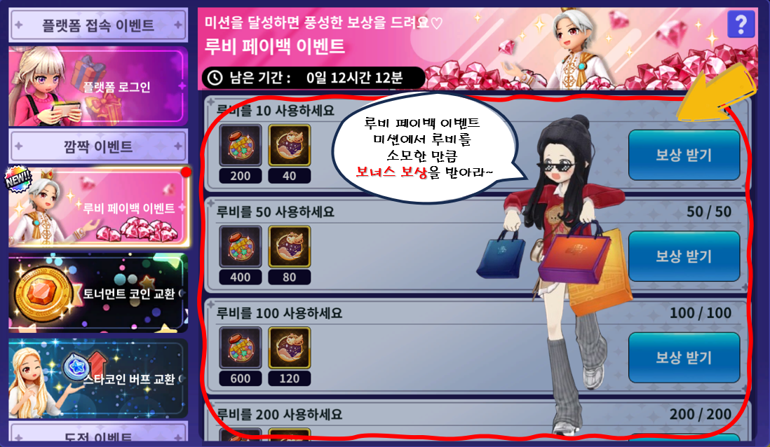 ※ 루비 페이백 이벤트 미션에 대한 자세한 내용을 확인해 보세요!