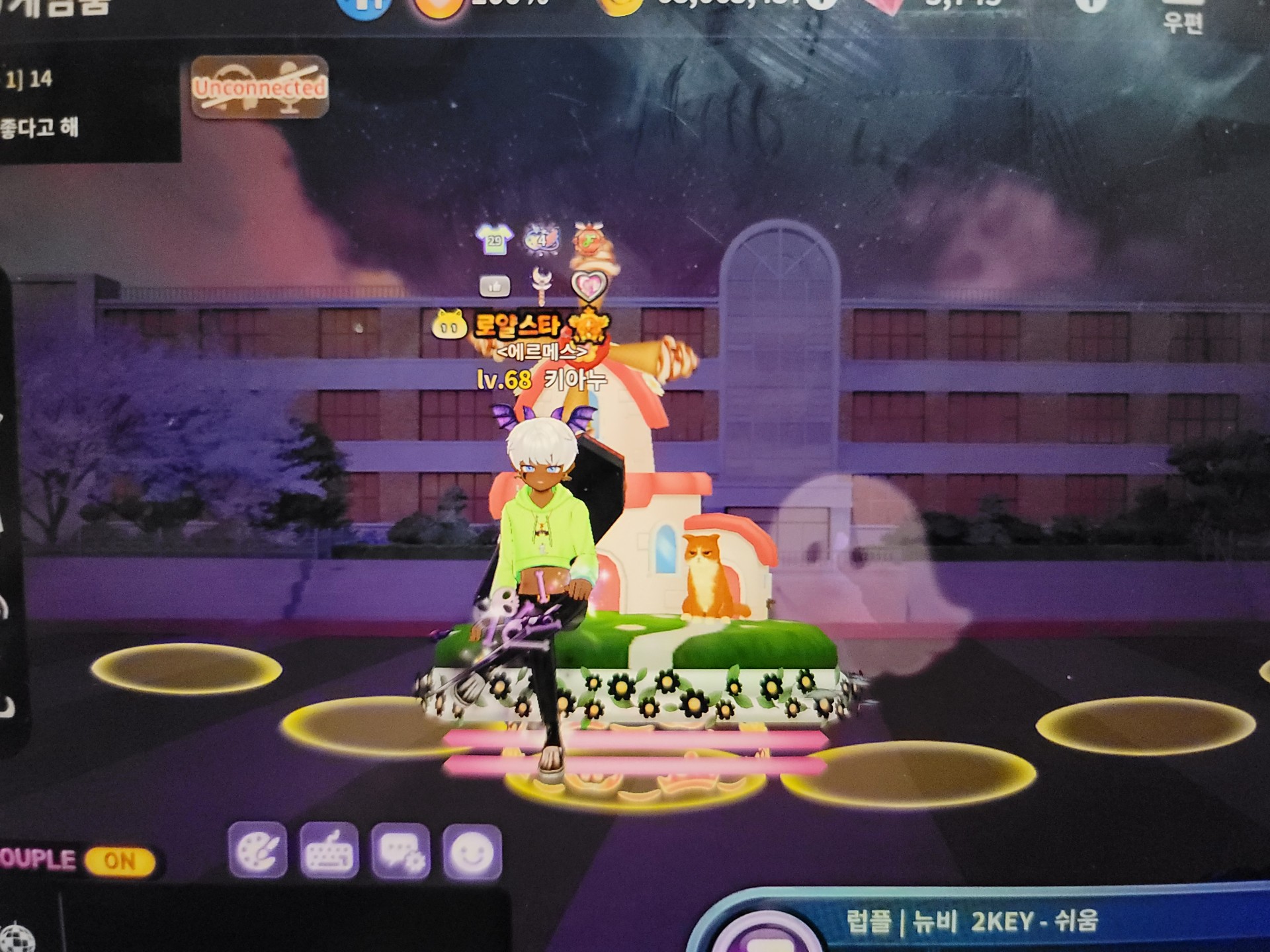 착용 코스튬: 아찔한 할로윈!스켈레톤 슬립온, 아찔한 할로윈!죽음의 낫, 으스스한 인형사 스타일리시 백, 아찔한 할로윈!파닥파닥 머리띠, 으스스한 인형사 눈 페인팅, 아찔한 할로윈!오싹오싹 목걸이, 아찔한 할로윈!오싹오싹 귀걸이, 으스스한 인형사 팬츠