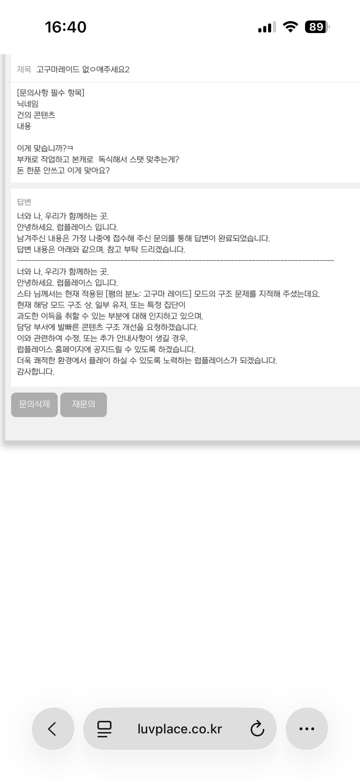 난 악용자들 닉,팸,대화내용 문의 했는데