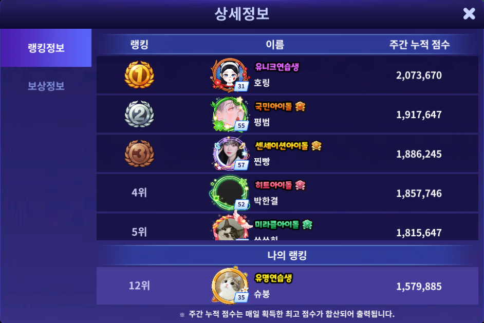 다들 레벨업 때문에 경험치 잘먹는 아이돌 배틀 쪽으로 많이 몰린 것 같은데