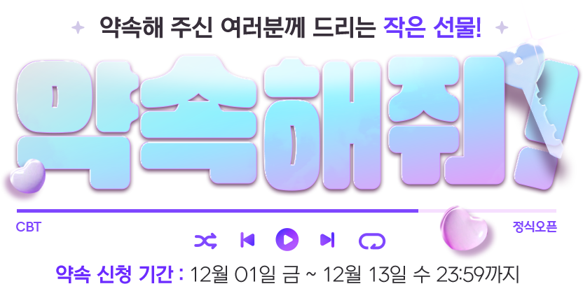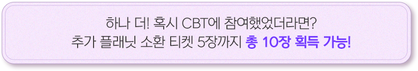 - CBT에 참여했던 계정으로 약속 이벤트를 진행하여 게임 정식 오픈 후 lv.20을 달성 시
