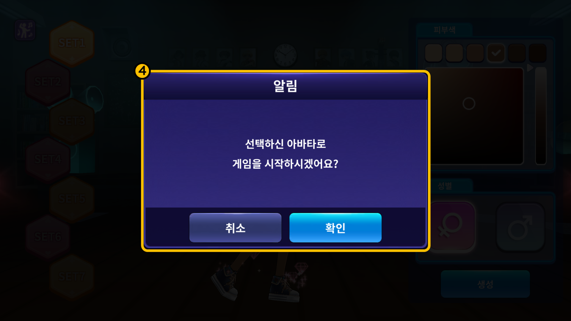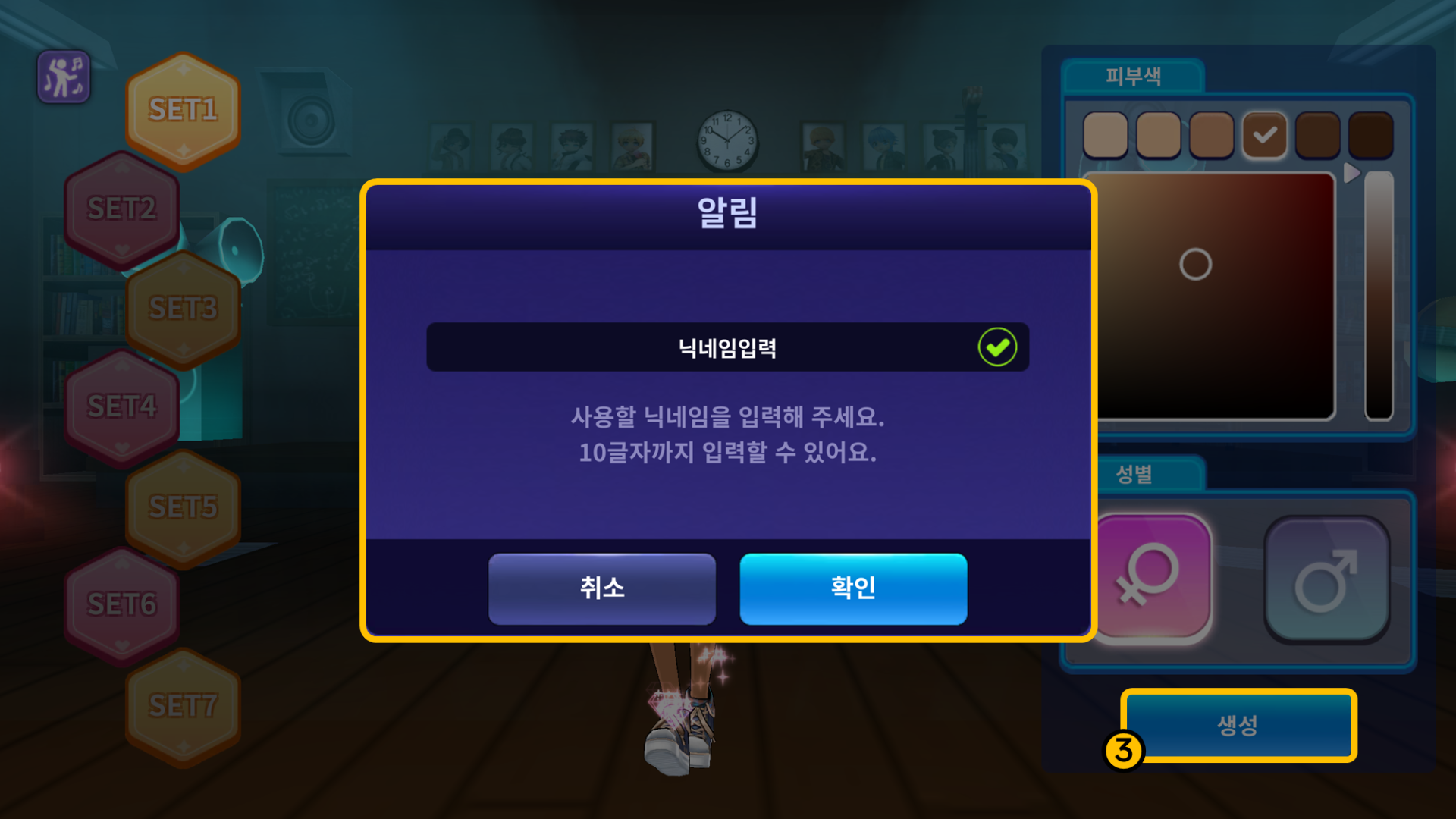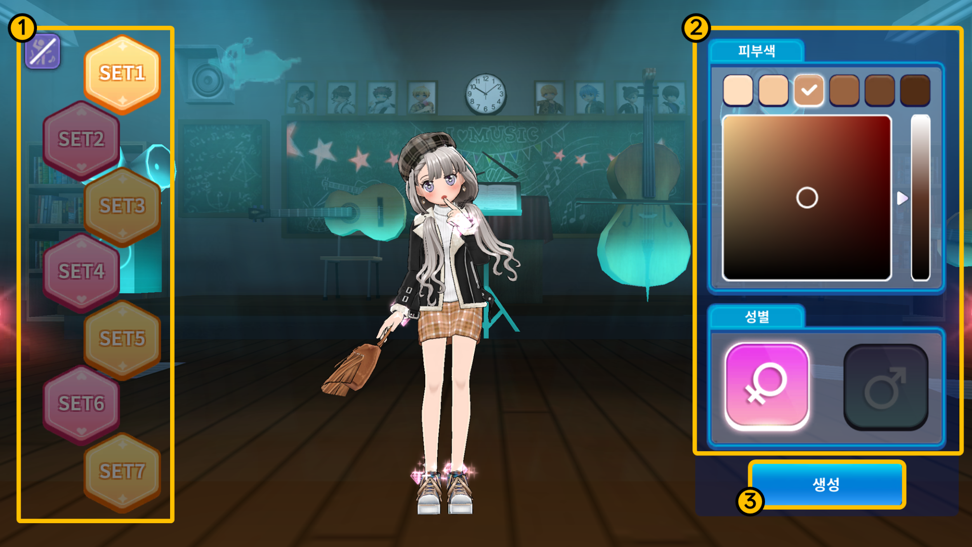 ② 캐릭터의 성별, 피부색을 커스터마이징 합니다.