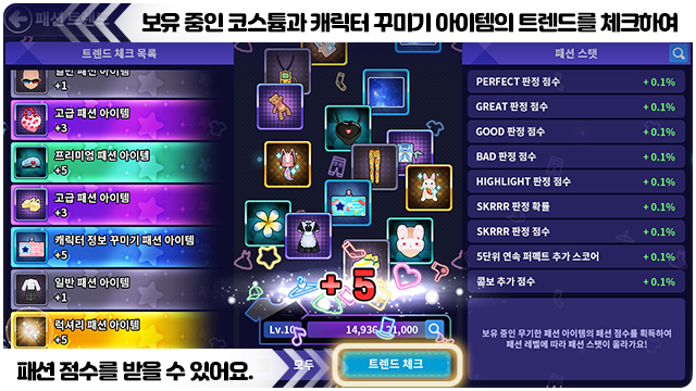 ■ 트렌드 체크 시 각 아이템의 패션 점수를 획득할 수 있어요.