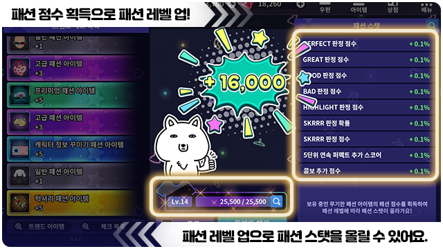 ■ 패션 레벨 업시 패션 트렌드 스탯을 올릴 수 있어요.