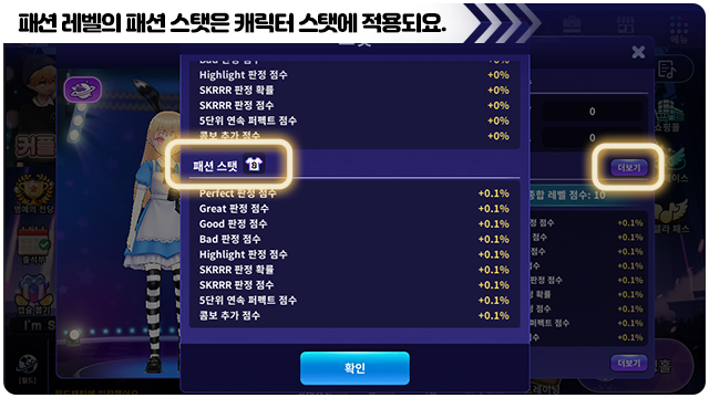■ 캐릭터 정보의 스탯에서 패션 트렌드 스탯 정보를 확인할 수 있어요.