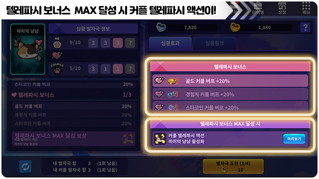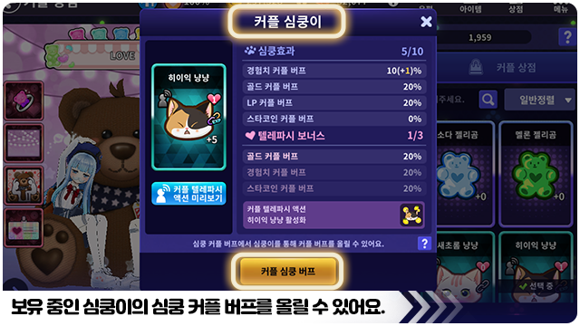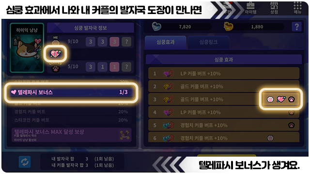 ■ 심쿵이의 커플 버프 보너스를 추가할 수 있는 심쿵 링크 컨텐츠를 준비 중이에요!