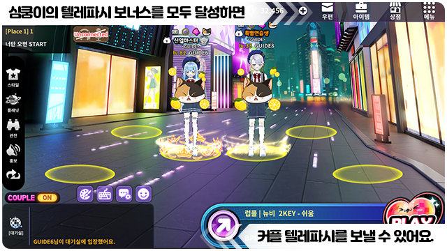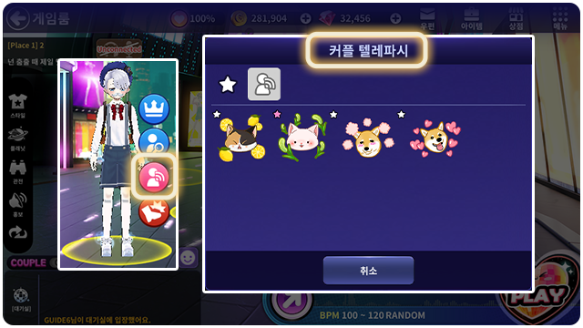 ■ 게임 룸에서 내 커플 캐릭터를 선택하면 커플 텔레파시 버튼이 나타나요.