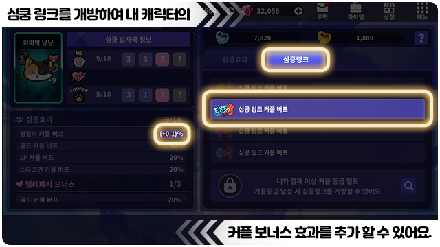 ■ 심쿵 링크 적용 시 커플 버프 보너스 효과를 추가할 수 있어요.
