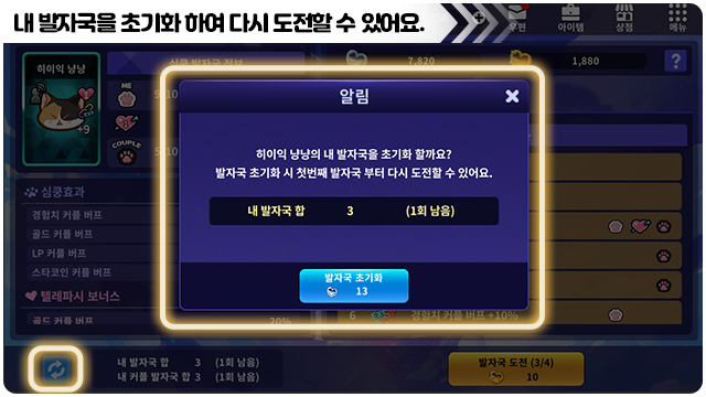 ■ 내 발자국 초기화 시 텔레파시 보너스 단계 정보가 변경돼요.