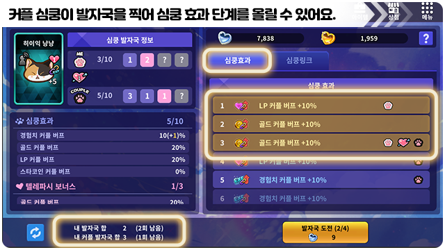 ■ 심쿵이의 심쿵 효과가 커플 버프에 반영돼요.