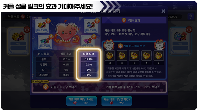 ■ 심쿵 링크 적용 시 커플 버프 활성화로 심쿵 링크 효과를 함께 적용 받을 수 있어요!