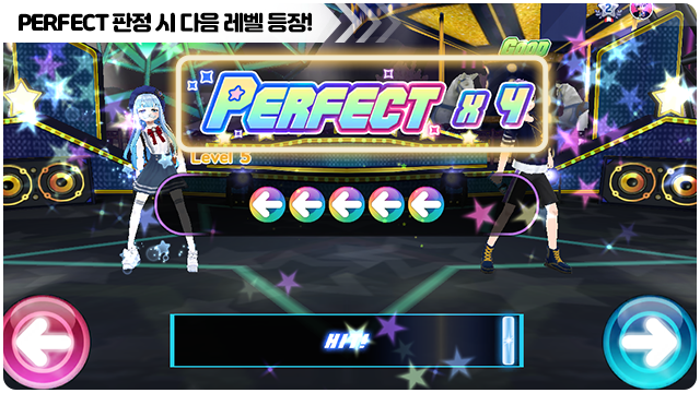 ■ PERFECT 판정 입력 시 다음 레벨의 채보가 출력 돼요.