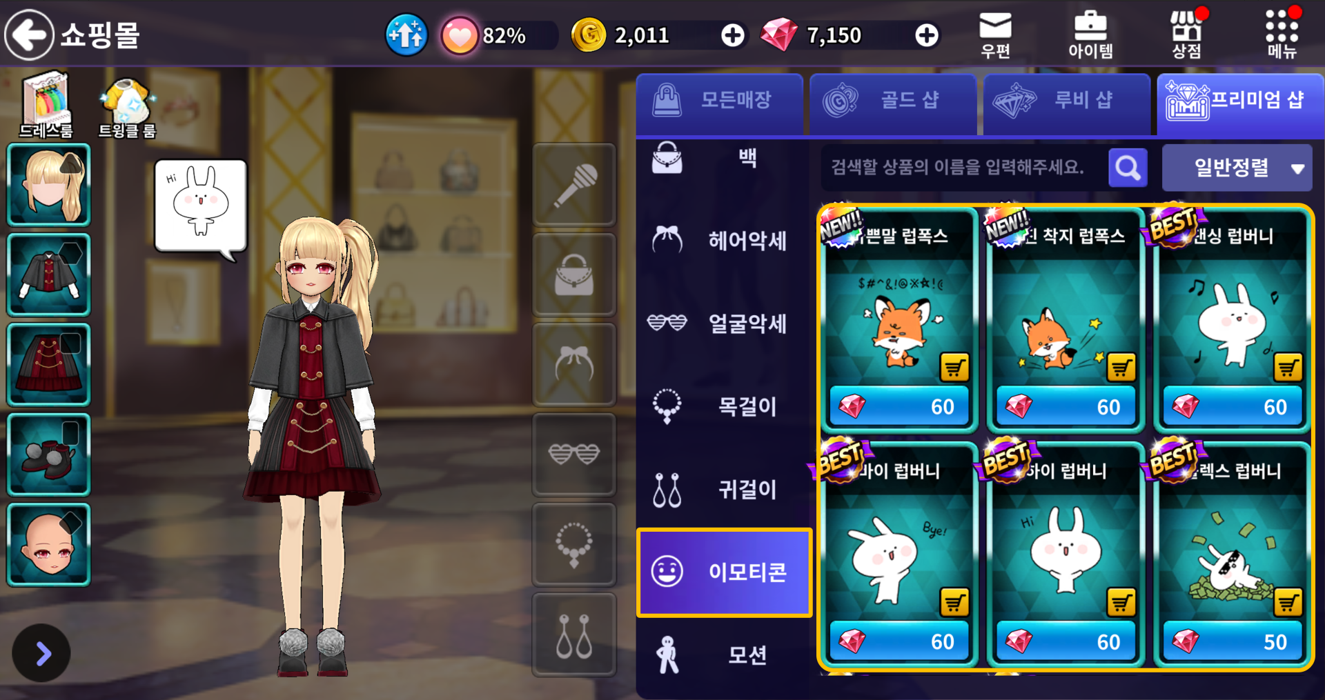 ■ 이모티콘은 [메인화면] - [쇼핑몰] - [코스튬 상점] - [이모티콘] 탭을 통해 구매할 수 있습니다.