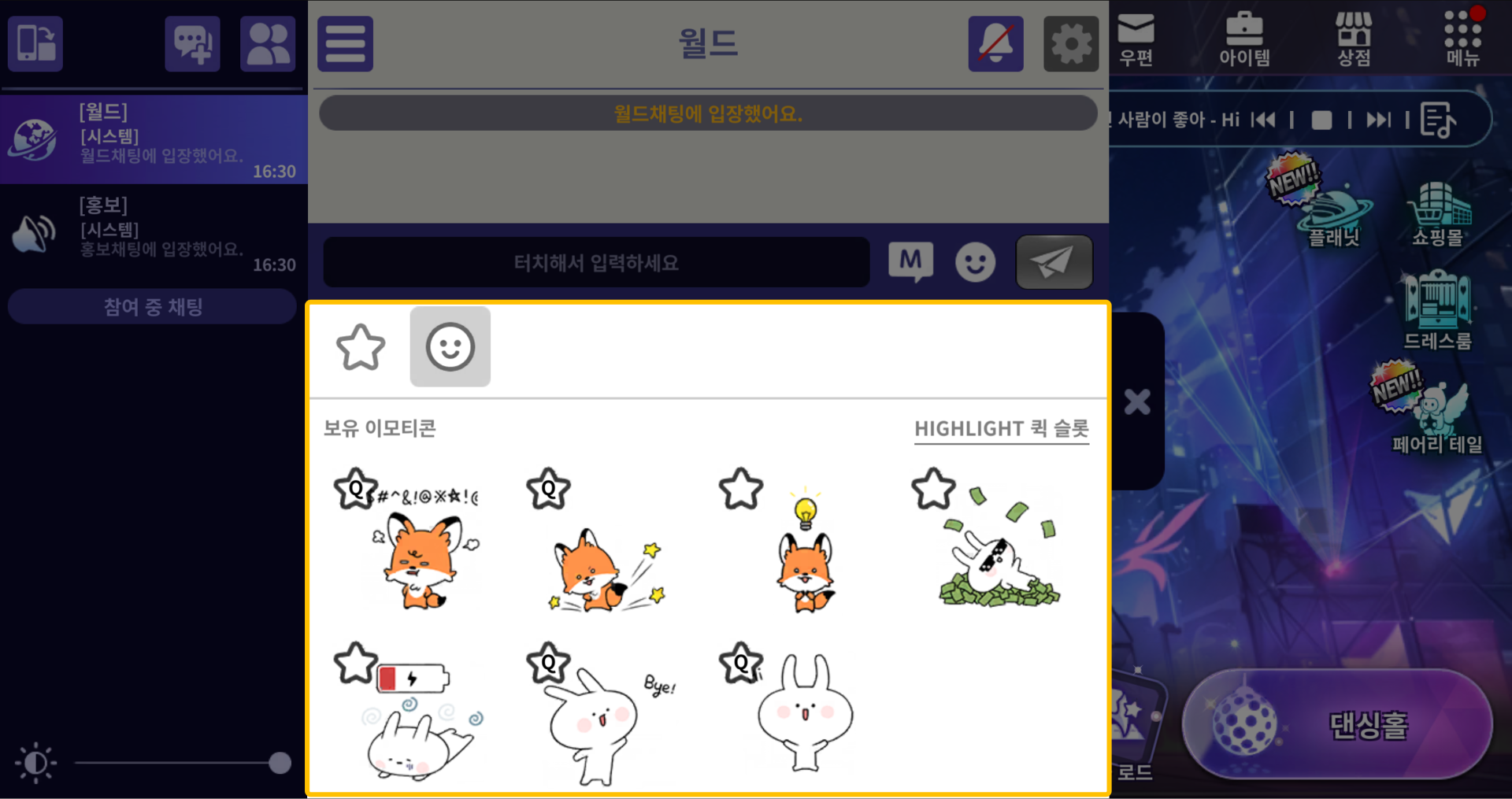 ■ 자주 사용하는 이모티콘을 즐겨찾기 할 수 있으며, HIGHLIGHT 퀵 슬롯은 최대 4개까지 등록할 수 있습니다.