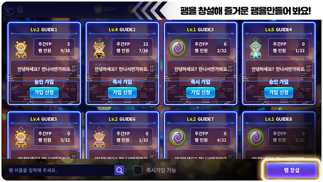 ■ 팸 창설을 통해 새로운 팸을 창설할 수 있어요.