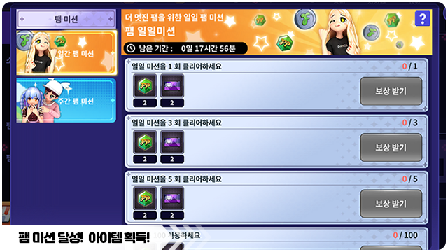 ■ 팸 미션은 일간 팸 미션과 주간 팸 미션이 있어요.