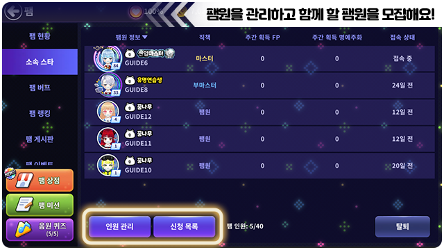 ■ 팸 명예주화는 팸원들이 음원 퀴즈에서 획득할 수 있어요.