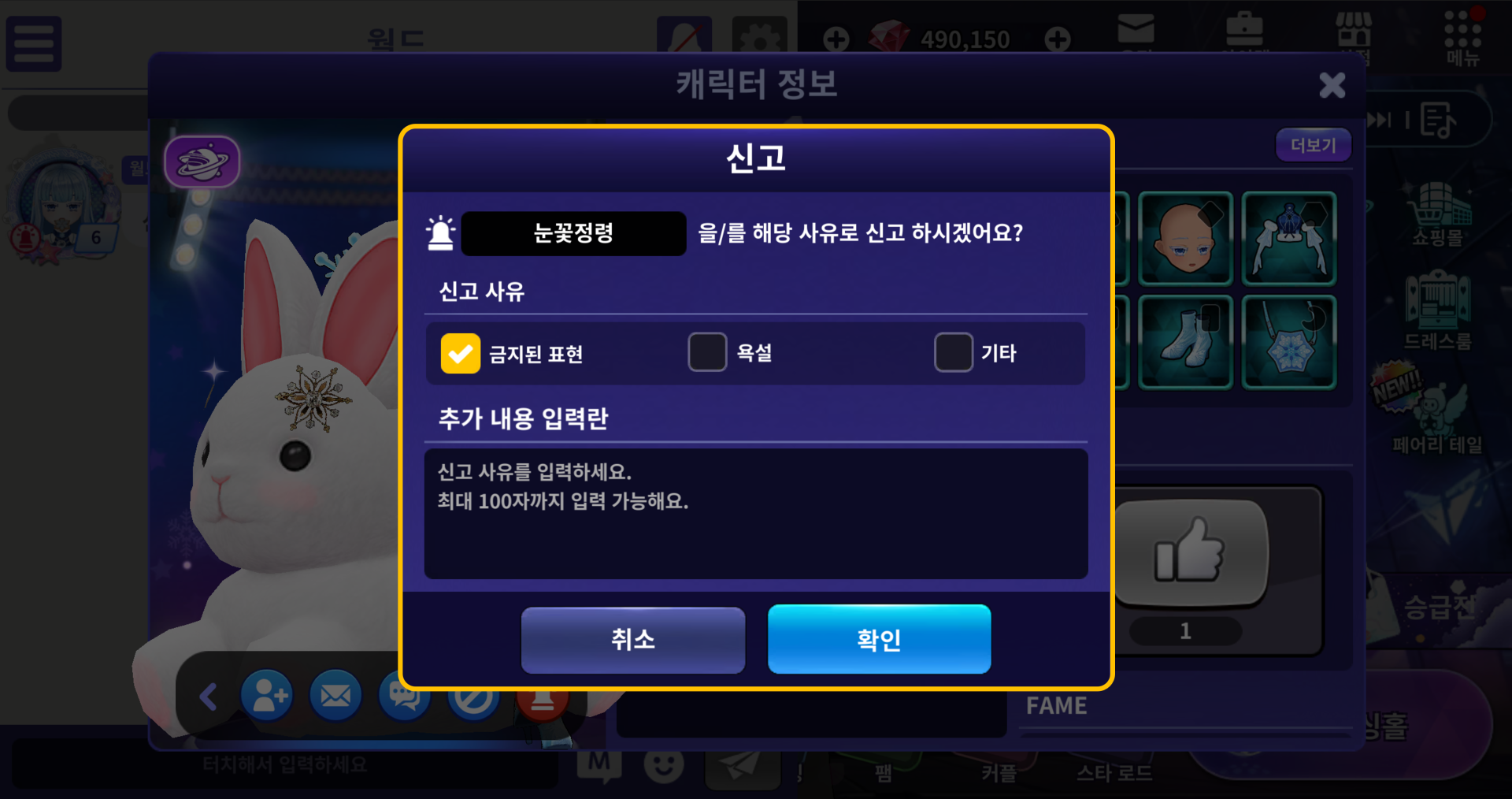 ※ 차단 해지: [해당 캐릭터 정보]에서 차단 버튼 재클릭 또는 [메인화면] - [설정] - [차단] 탭에서 가능합니다.