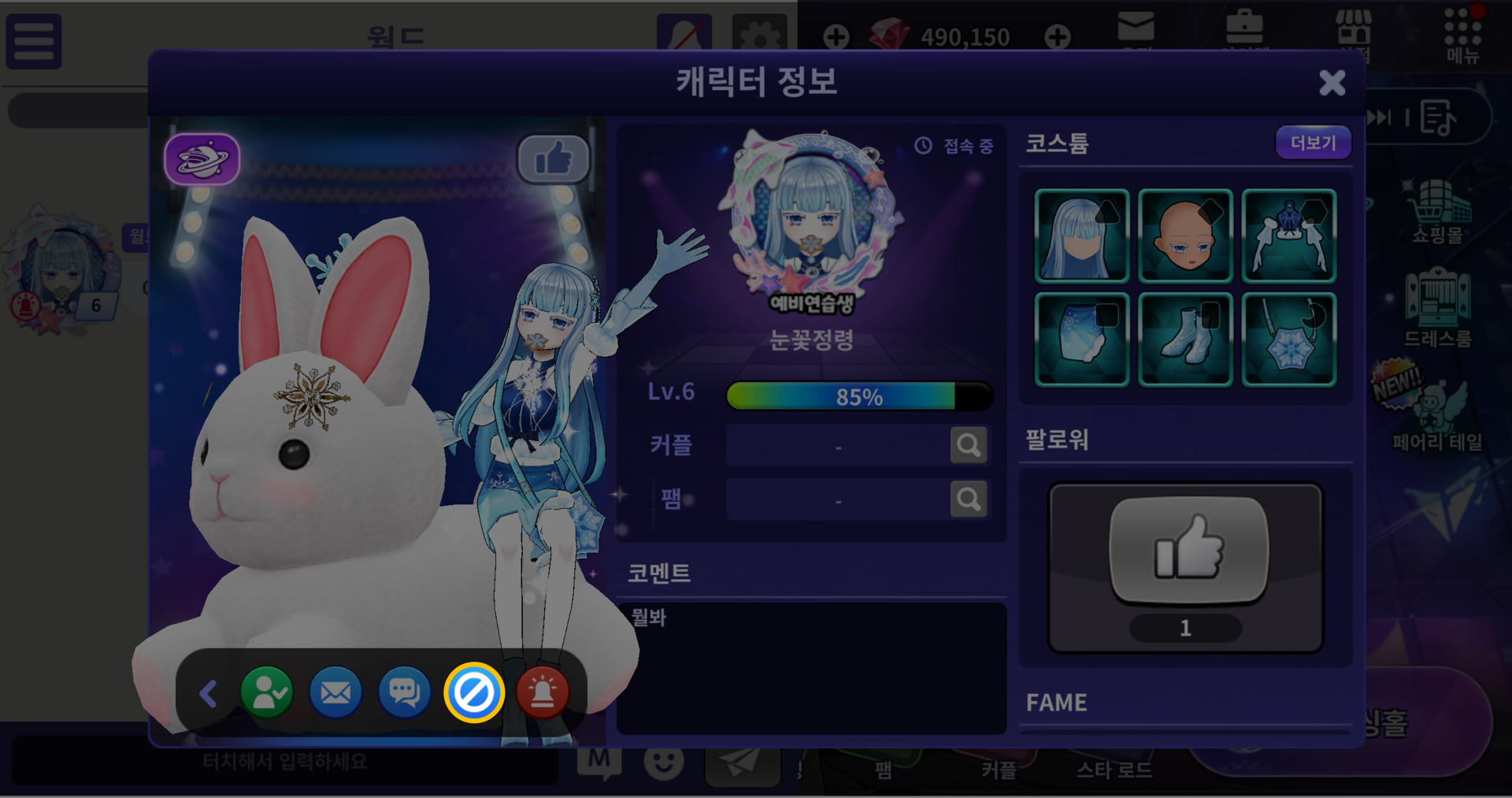 ■ 차단을 진행하려는 상대방의 [캐릭터 정보] 에서 차단을 진행할 수 있습니다.