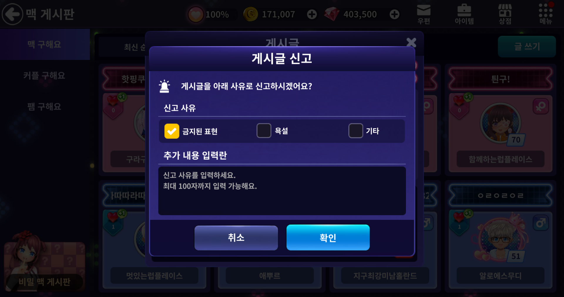 ※ 비밀 맥 게시판 내에서도 편지를 보낼 수 있으며, 발송 시 익명의 댄서로 발송됩니다.