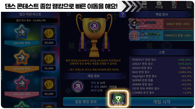 ■ 댄스 콘테스트 종합 랭킹 버튼을 통해 빠른 이동이 가능해요.