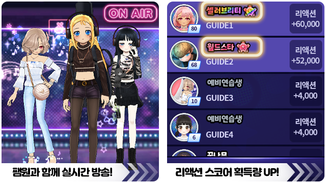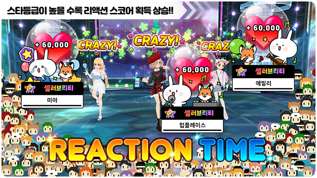 ■ 방송멤버의 스타등급에 따라 리액션 타임 스코어 획득량이 상승해요.