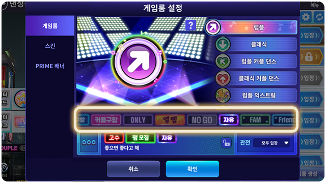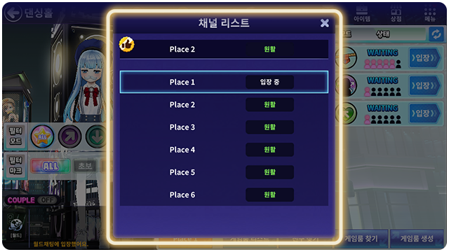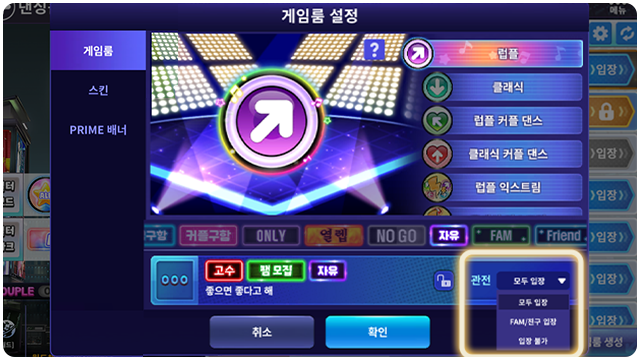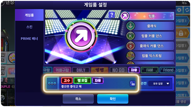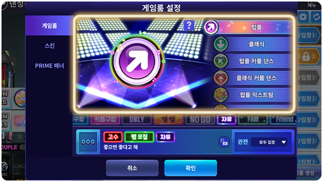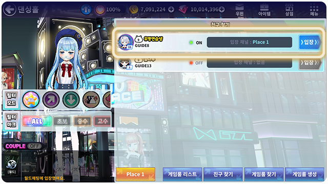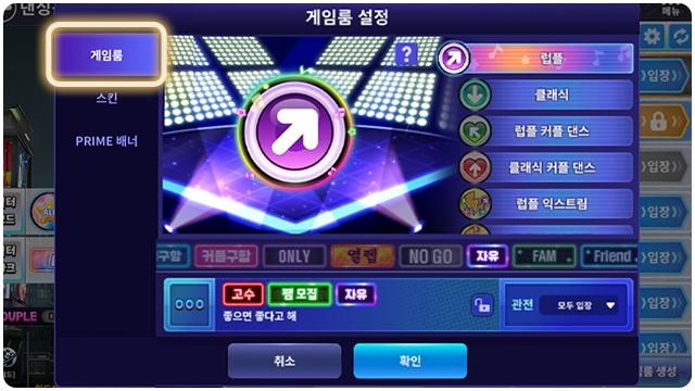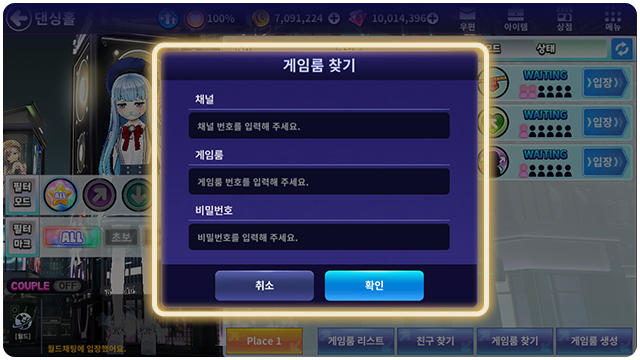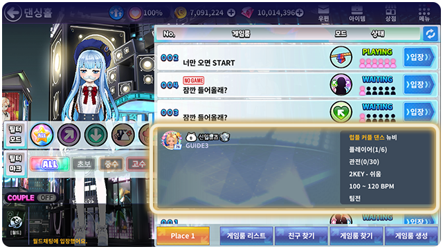 ■ 댄싱홀 로비에서 게임룸 리스트를 확인할 수 있어요.