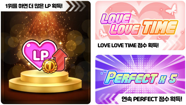 ■ 러브게이지를 채워 LOVE LOVE TIME에 성공하면 높은 점수를 획득해요.