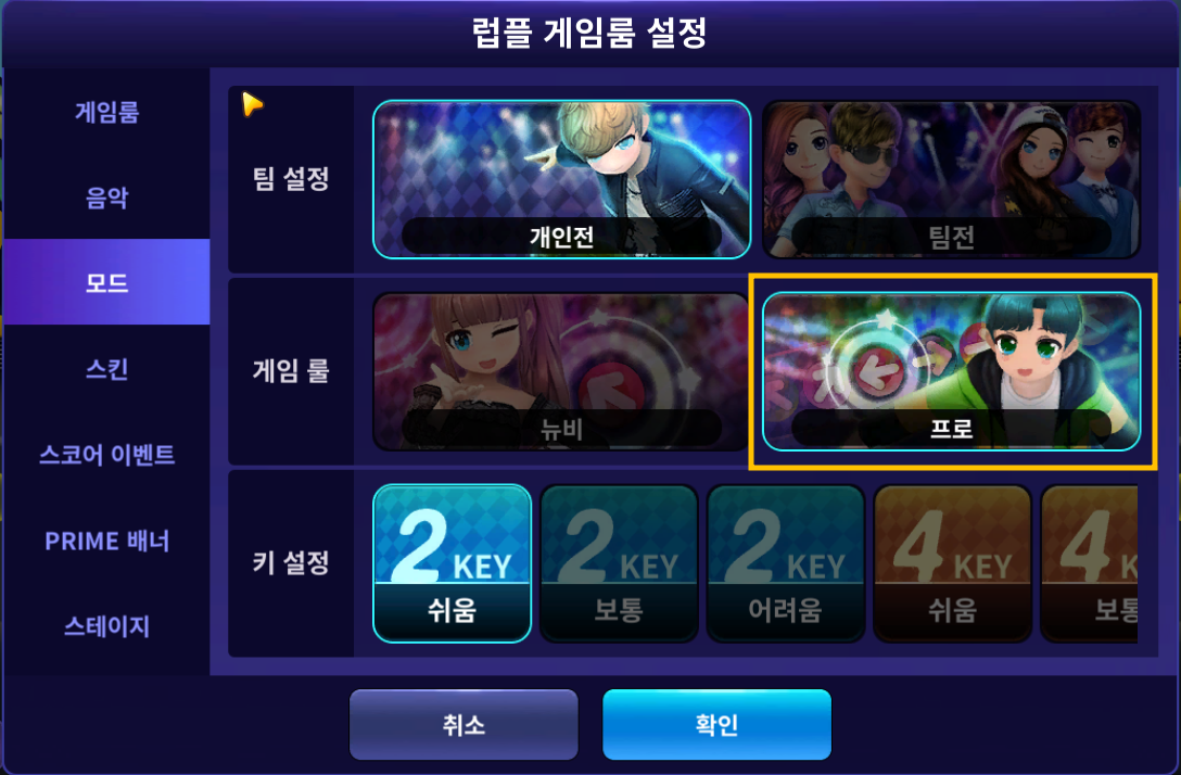 2) 게임 룰은 반드시 '프로' 모드로 진행해야 합니다.