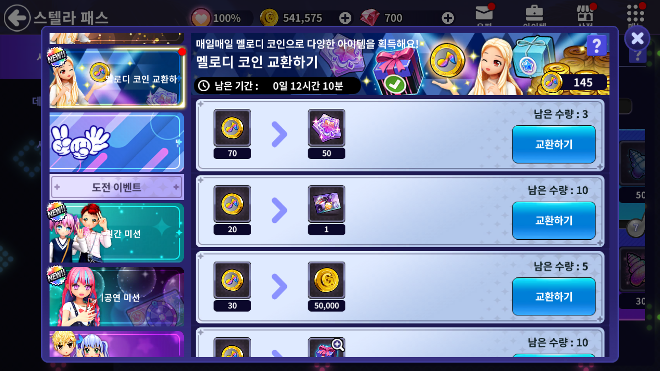 교환 품목멜로디 코인구매 제한