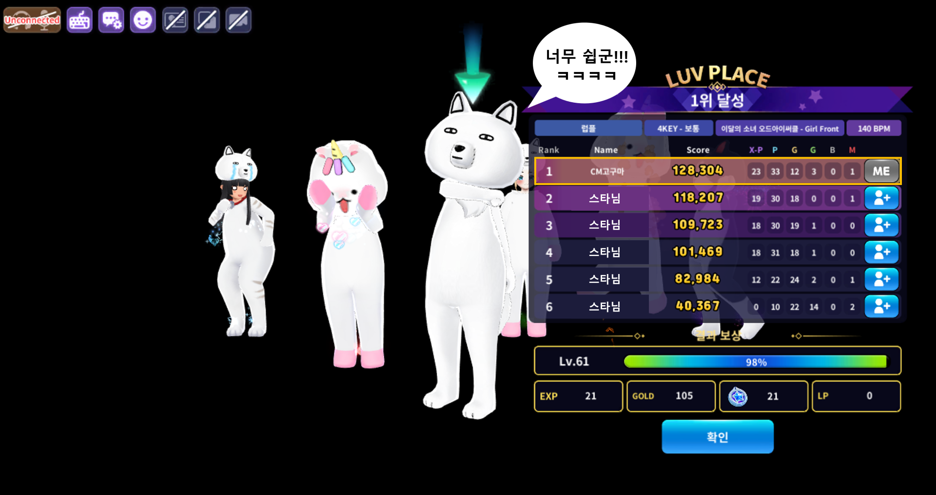 2) 신나게 즐기고, 최종 점수에서 CM고구마를 이기면 끝!!!