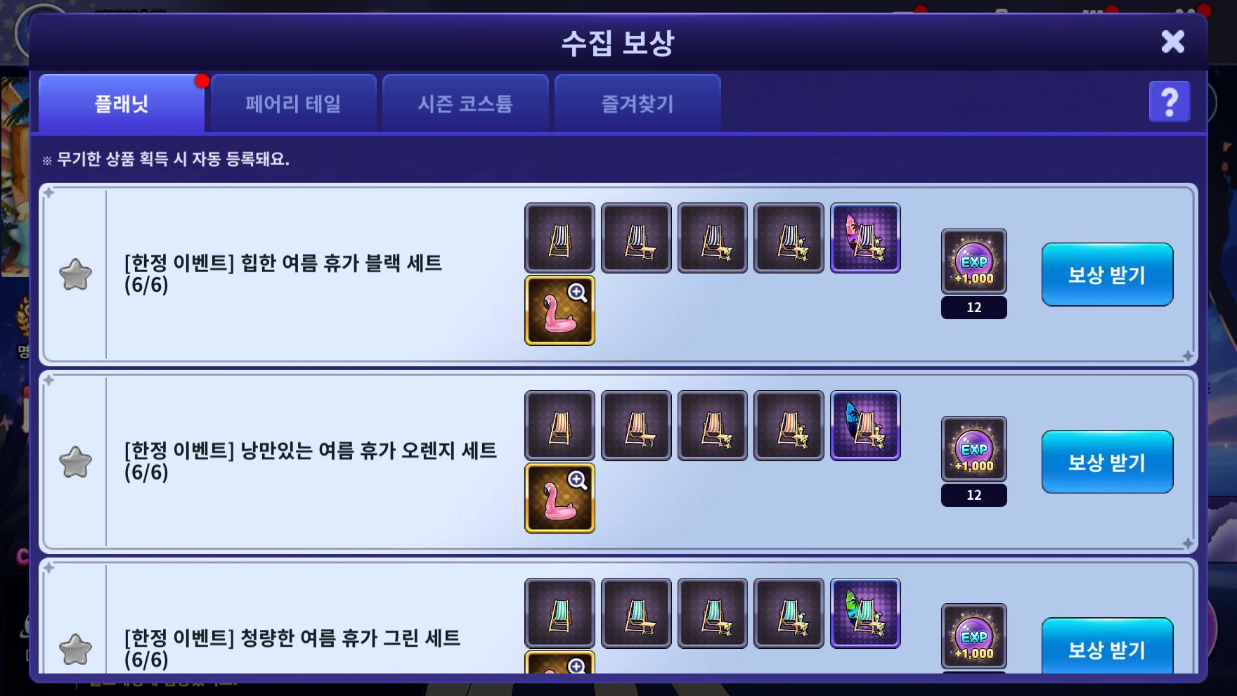 [트로피칼 파라다이스 선베드] 플래닛을 모아 한정 수집 보상을 모두 완료하고, 막대한 EXP을 받아가세요!