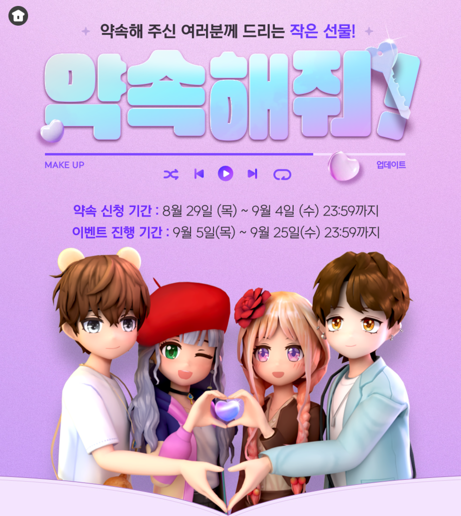 업데이트를 기다리는 동안, 더욱 혜택을 제공하기 위해서 '약속해줘' 이벤트를 오픈하였습니다.