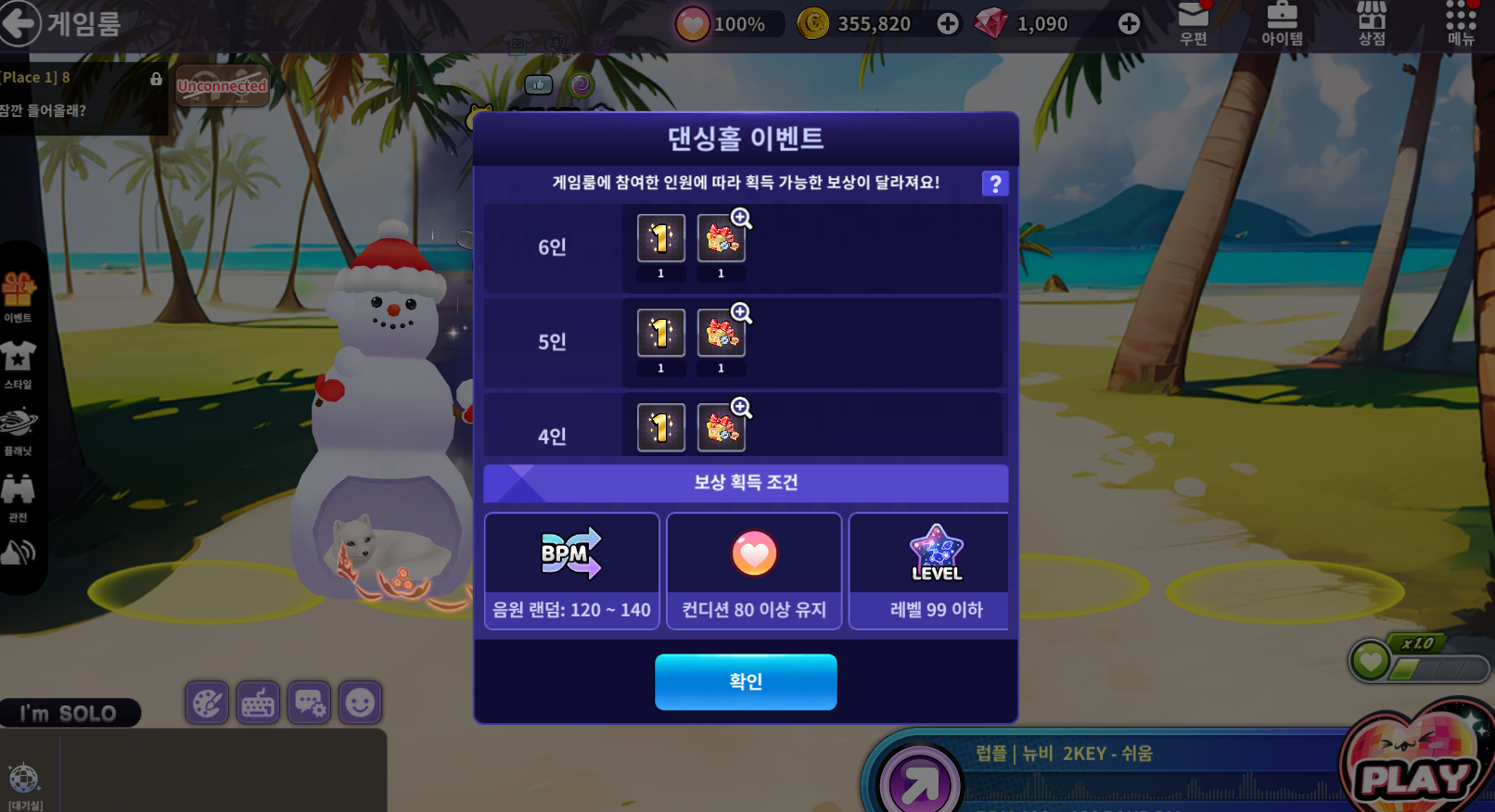 - 댄싱홀 이벤트 보상은 참여 인원 수에 따라 달라질 수 있습니다.