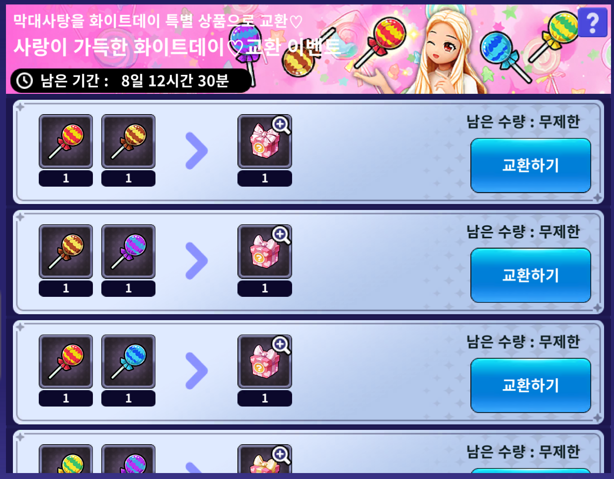 ⭐달콤한 막대사탕♡교환 이벤트 교환 품목