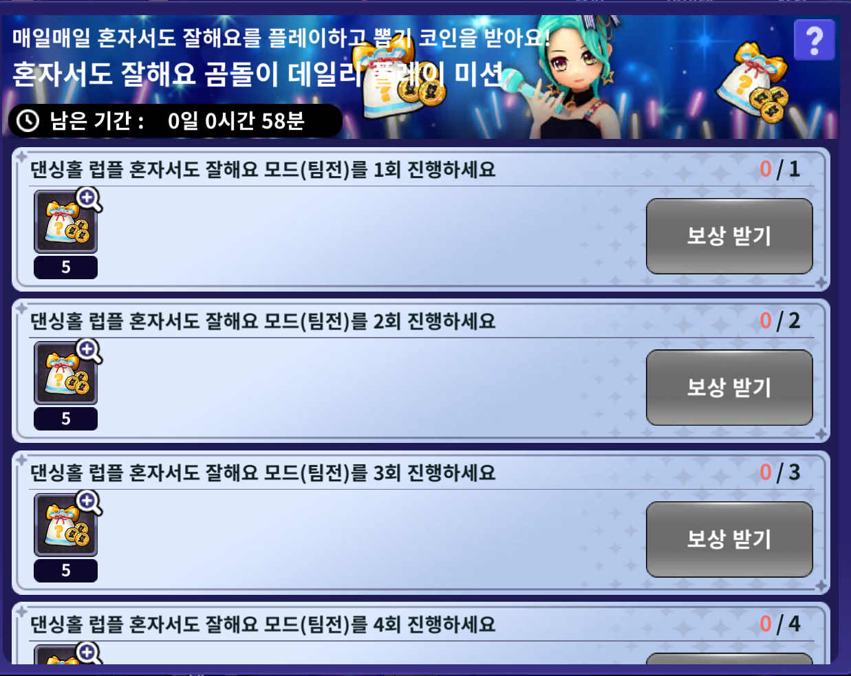 | 스타 방위대 곰돌이 데일리 플레이 미션 | 혼자서도 잘해요 곰돌이 데일리 플레이 미션 | ||
