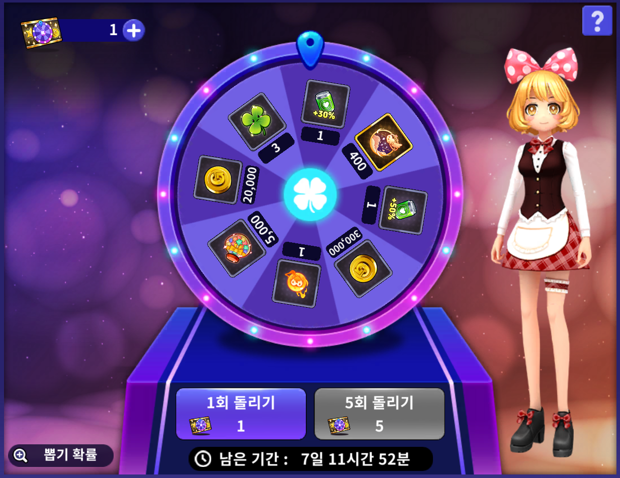 (룰렛 무료 돌리기는 오전 04시 기준 초기화가 진행되며, 초기화 전 이용하지 않은 무료 돌리기는 복구 되지 않습니다.)