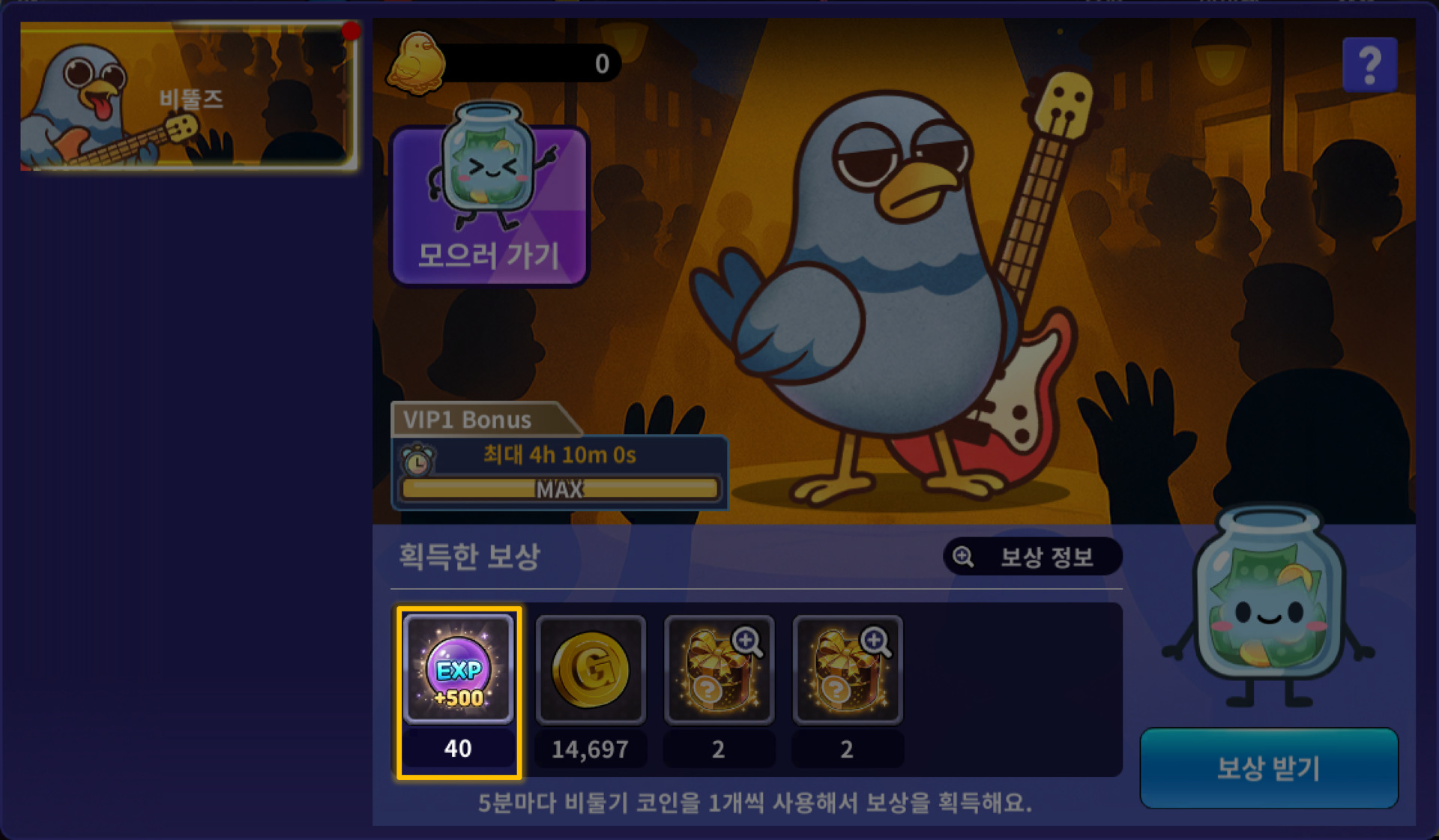 - 획득한 아이템은 [우편함]으로 지급됩니다.