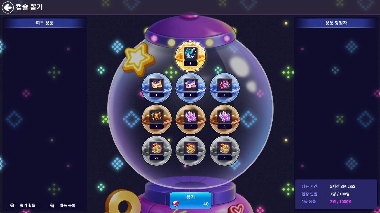 - 입장 후 루비를 지불하여 캡슐을 뽑을 수 있습니다.