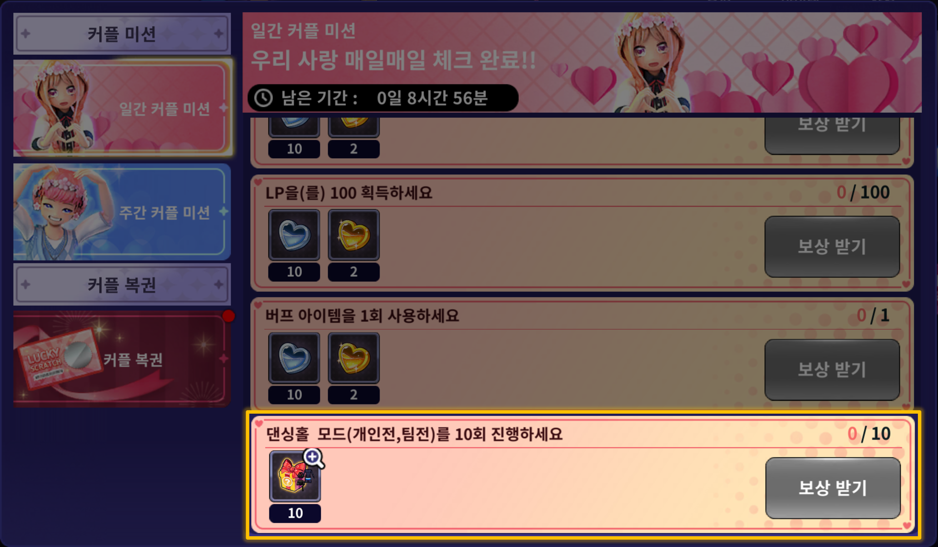 일간 커플 미션에 해당 박스를 보상으로 획득할 수 있는
