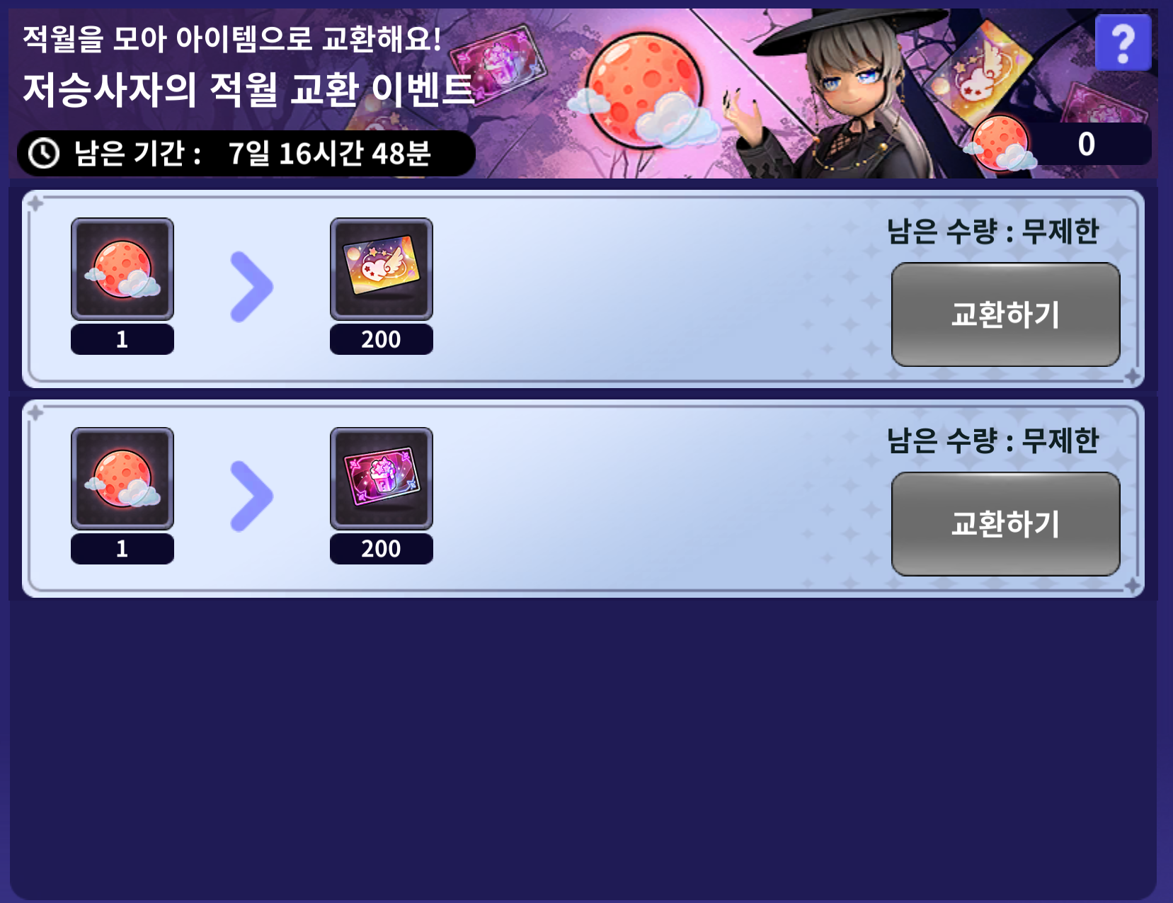 ⭐저승사자의 만월 교환 이벤트 교환 품목