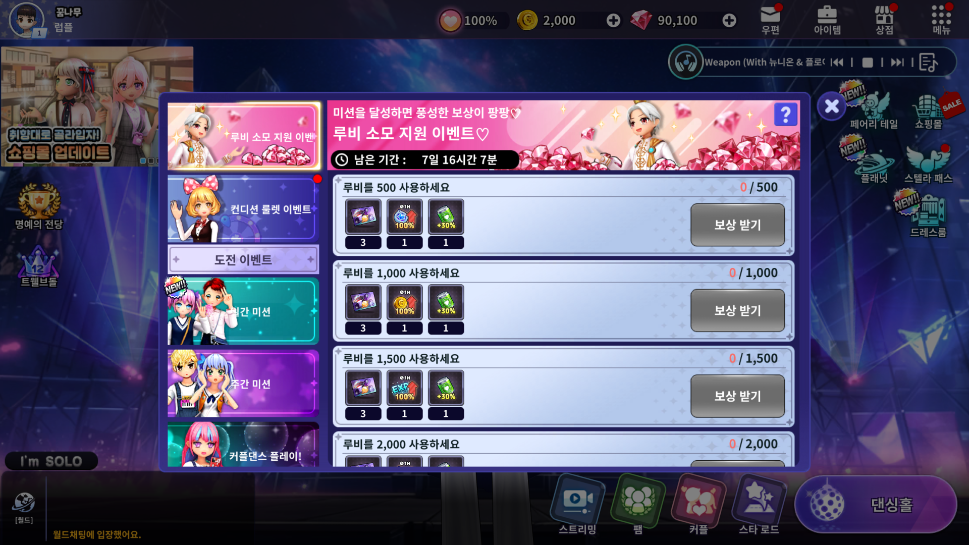 루비 소모 지원 이벤트 LUVPLACE