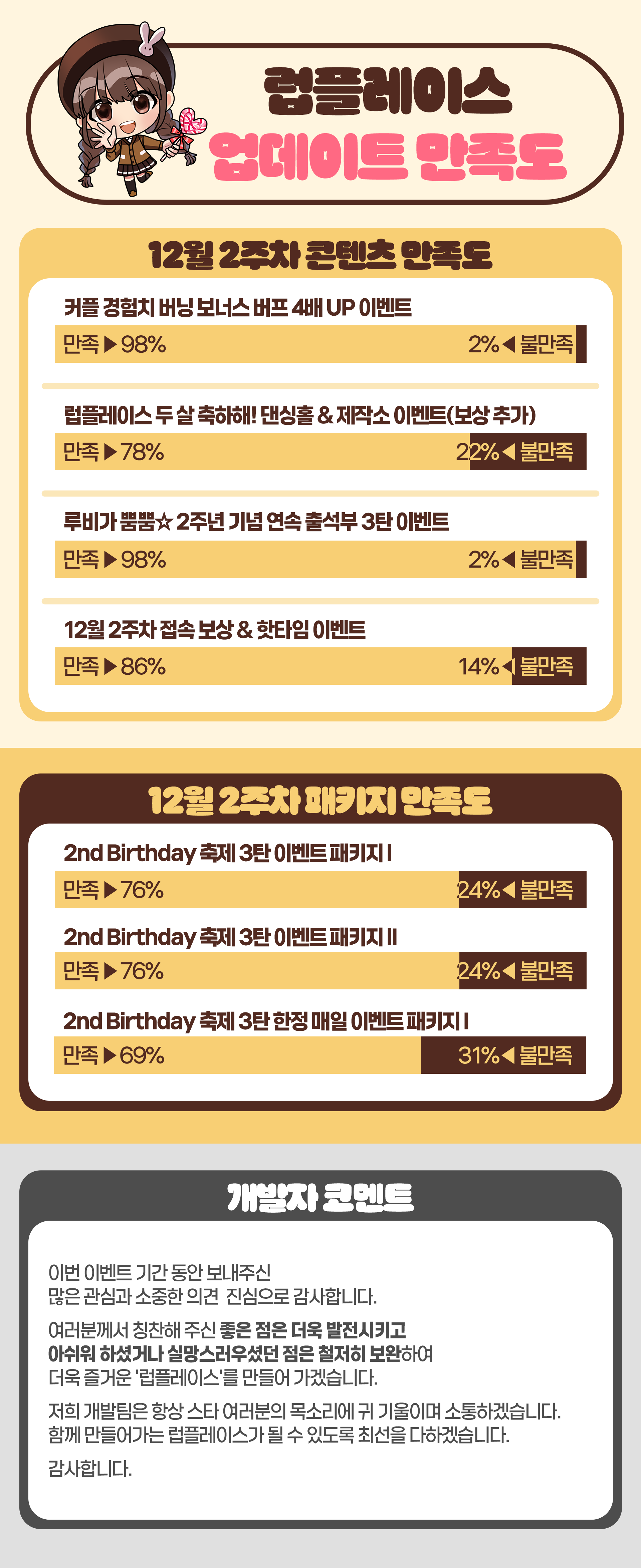 25년 12월 2주차 럽플레이스 업데이트 만족도 설문조사 결과 발표 LUVPLACE