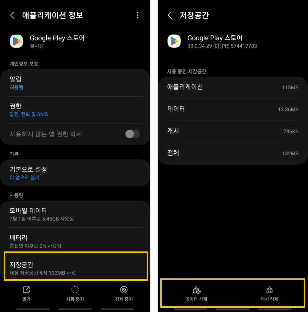 A: 간헐적으로 발생하는 현상으로 번거로우시겠지만 모바일 기기 내 [환경설정] - [Google Play 스토어] - 캐시/데이터 삭제를 통해 해결할 수 있습니다.
