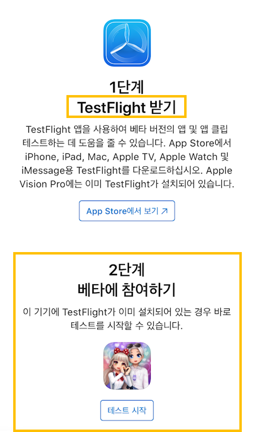 - 애플 정책상 TestFilght 앱을 통해 베타 버전의 게임을 플레이할 수 있습니다.