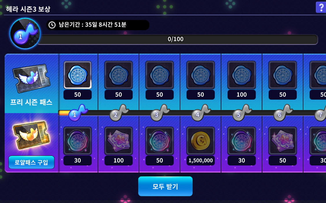 | 수집 보상 | 시즌 스텔라 포인트 50 | |