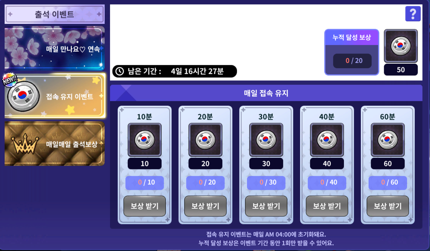 현재 [접속 유지 이벤트] 배너가 노출되고 있지 않는 현상이 확인 되었습니다.