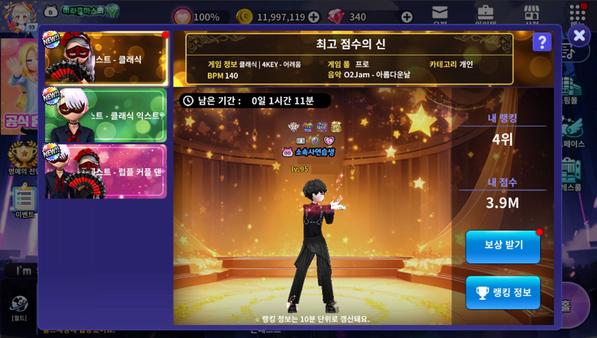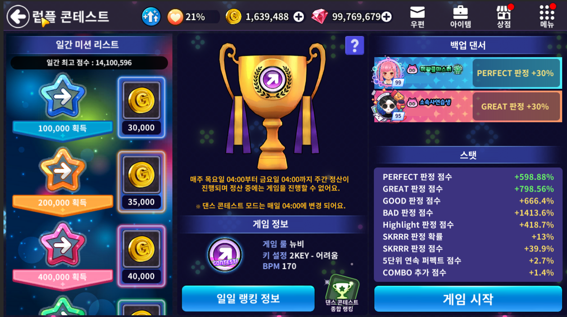 그 결과 댄싱홀 보상을 리뉴얼하여 획득 스코어가 높을수록